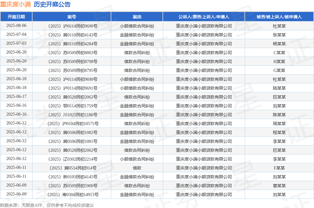 本站消息证配所配资,根据天眼查APP显示,近日公布了一则重庆度小满小额贷款有限公司作为原告/上诉人的开庭公告,详细内容如下:
